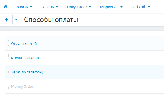 - In the admin panel at the top, select Administration> Payment Methods (see image below).