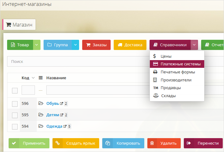 - On the displayed page, in the top menu, select References > Payment systems – see image below.
