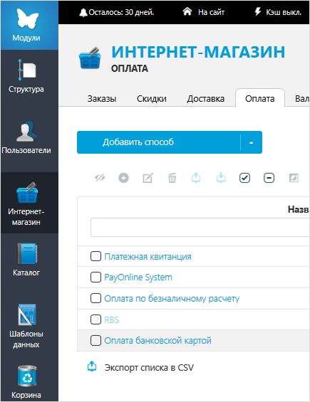 With the installed plugin for UMI.CMS, your customers will be able to pay with you through the payment page of Sberbank.