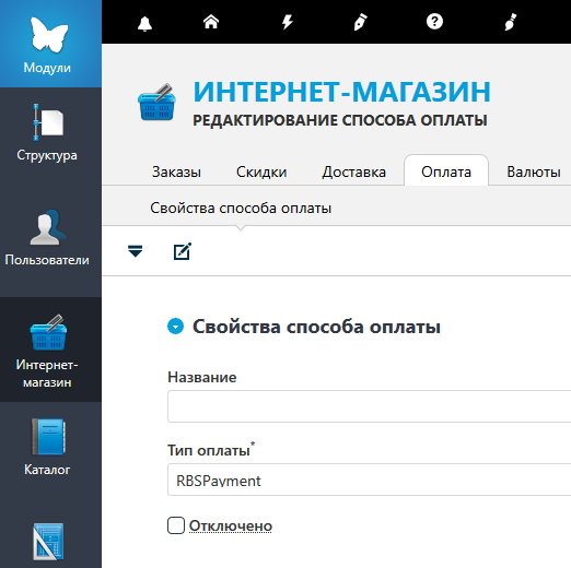 Payment type Select (or leave selected) RBSPayment. Disabled Determines if the plugin is enabled.